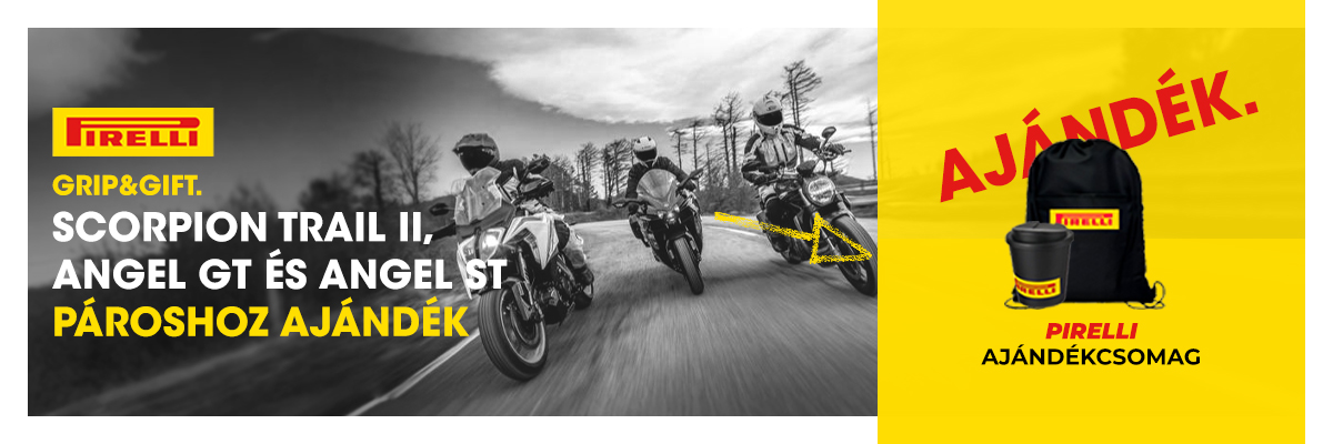 Most, ha Pirelli Scorpion Trail II, Pirelli Angel GT vagy Pirelli Angel ST motorgumi szettet rendelsz, egy Pirelli Ajándékcsomagot küldünk mellé ajándékba – a készlet erejéig.